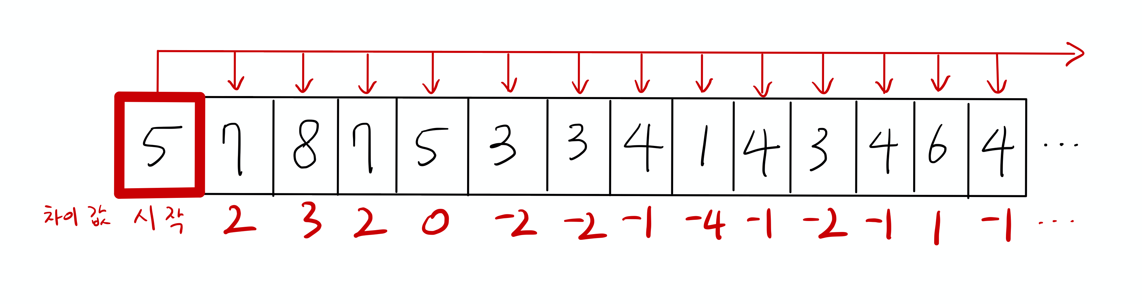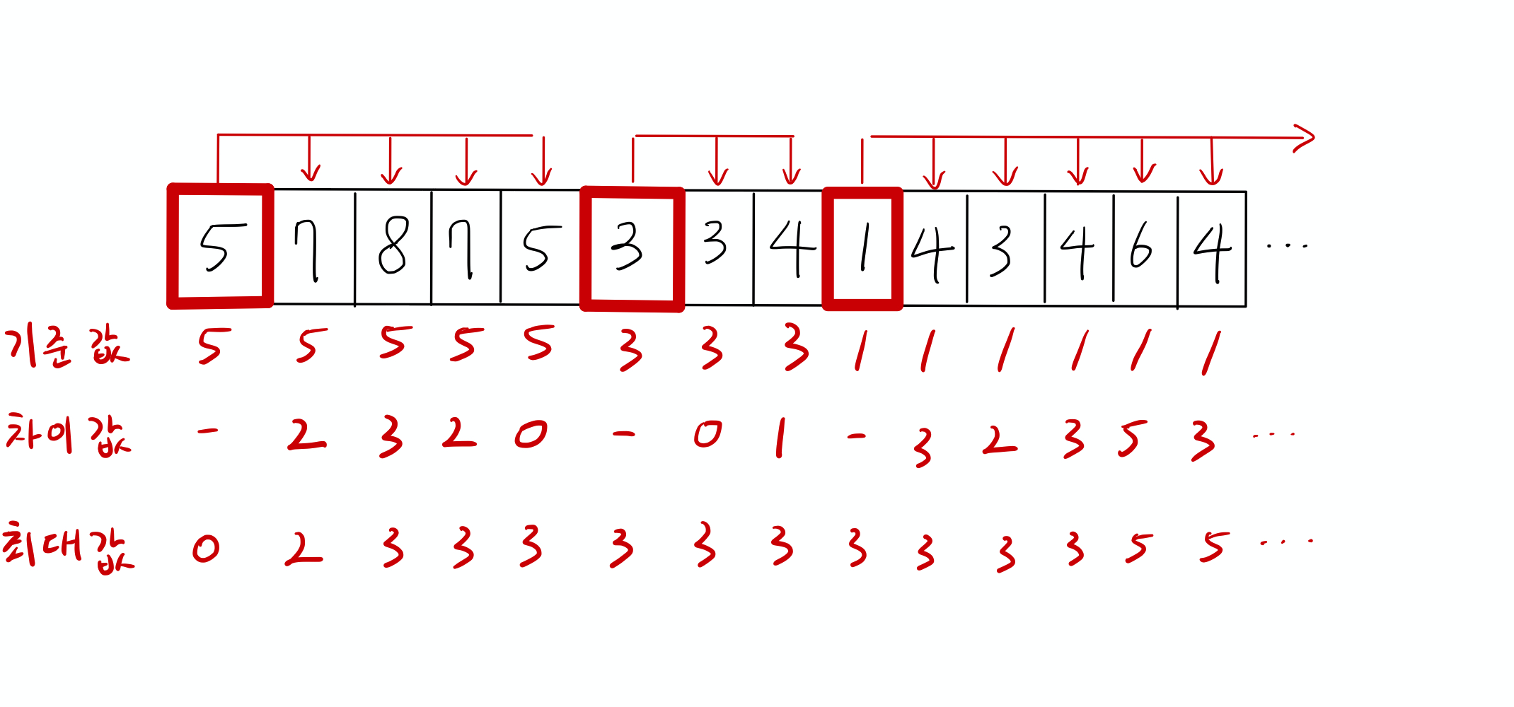 따라서, 현재의 비교 기준값(ex. 5)보다 낮은 값(ex. 3)이 나온 순간, 현재의 비교 기준값(ex. 5)과 이후 값들의 비교는 의미가 없어집니다.