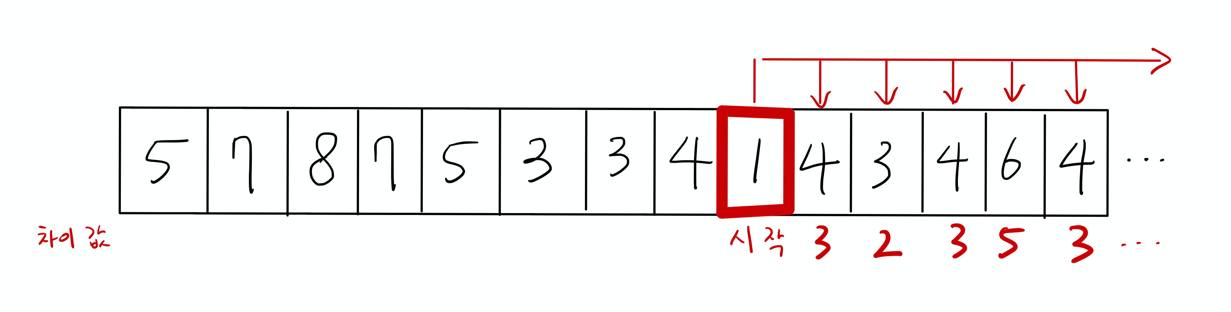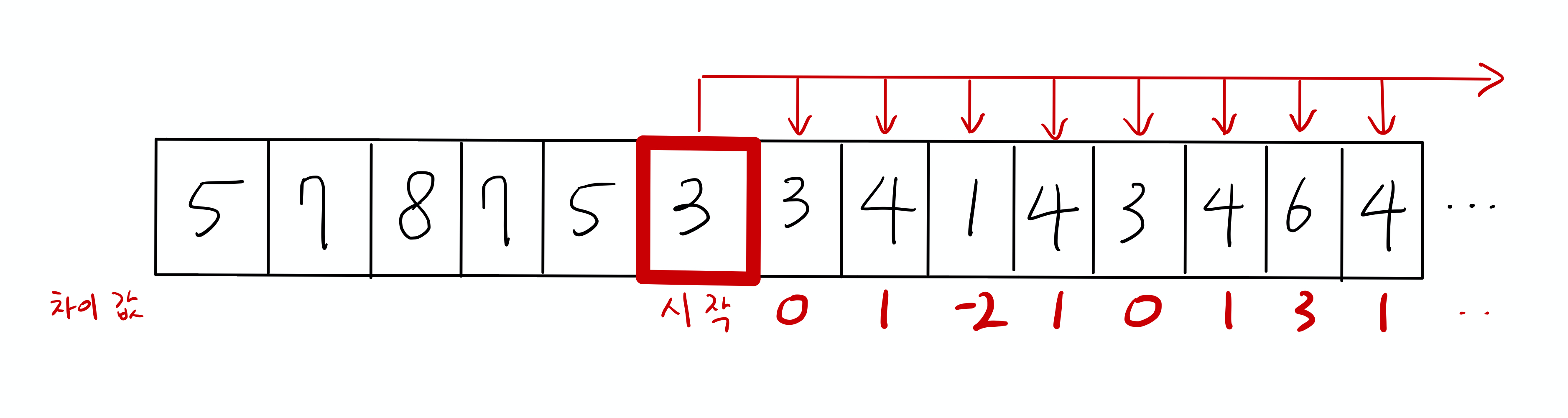 다음과 같은 배열이 존재한다고 해보죠. (아이패드로 그려봤는데, 잘나오네요)