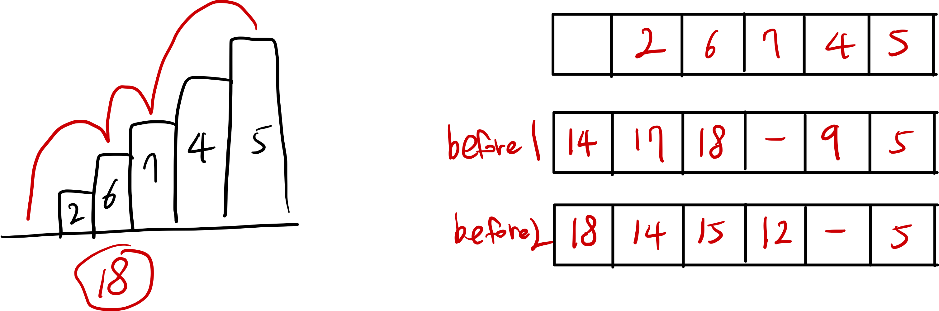 제가 임의로 작성한 2,6,7,4,5 계단으로 설명하면 다음과 같습니다.