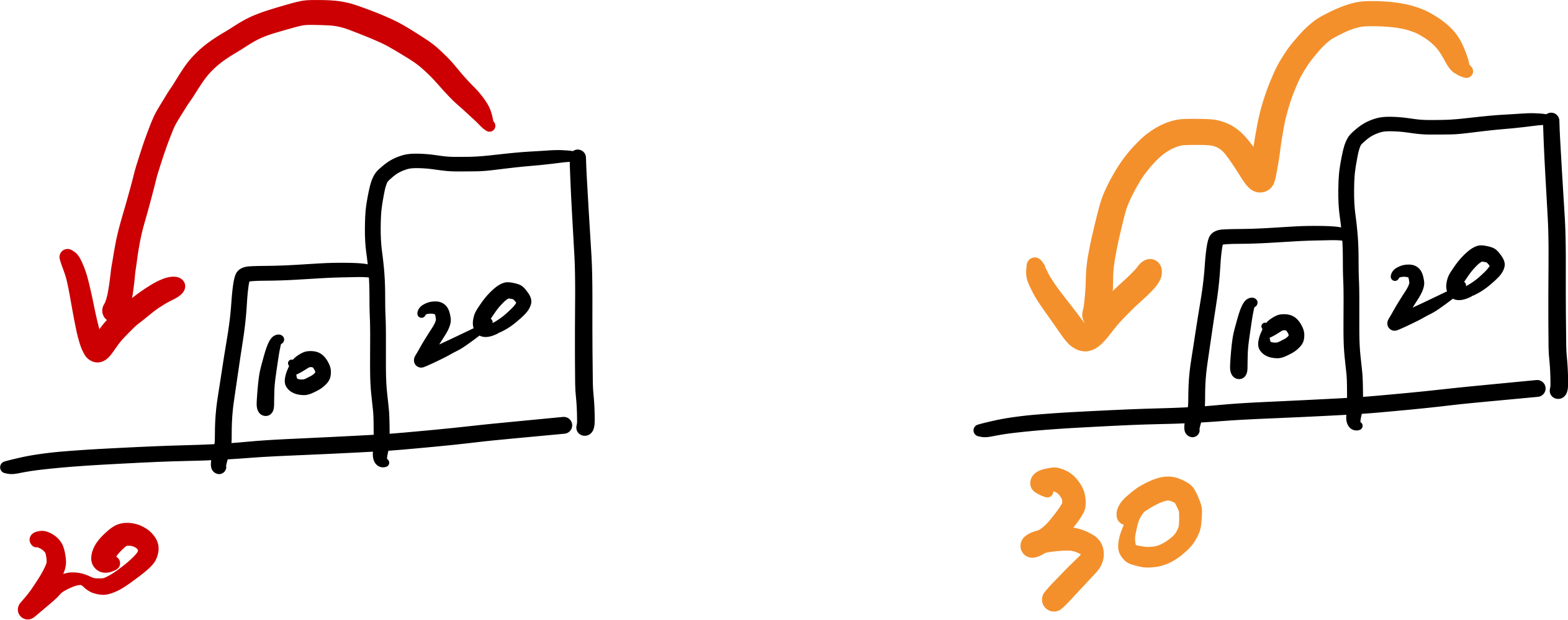 한칸 내려갈때는 두칸 내려간 배열에서 값을 가져오구요.