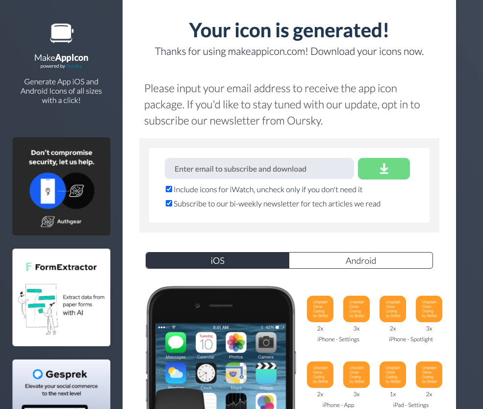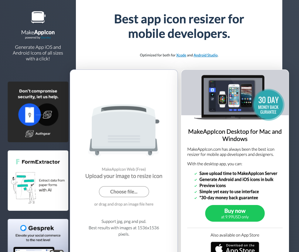 MakeAppIcon is an app icon resizer that helps developers and project managers generate the app icons required by App Store & Google Play Store.