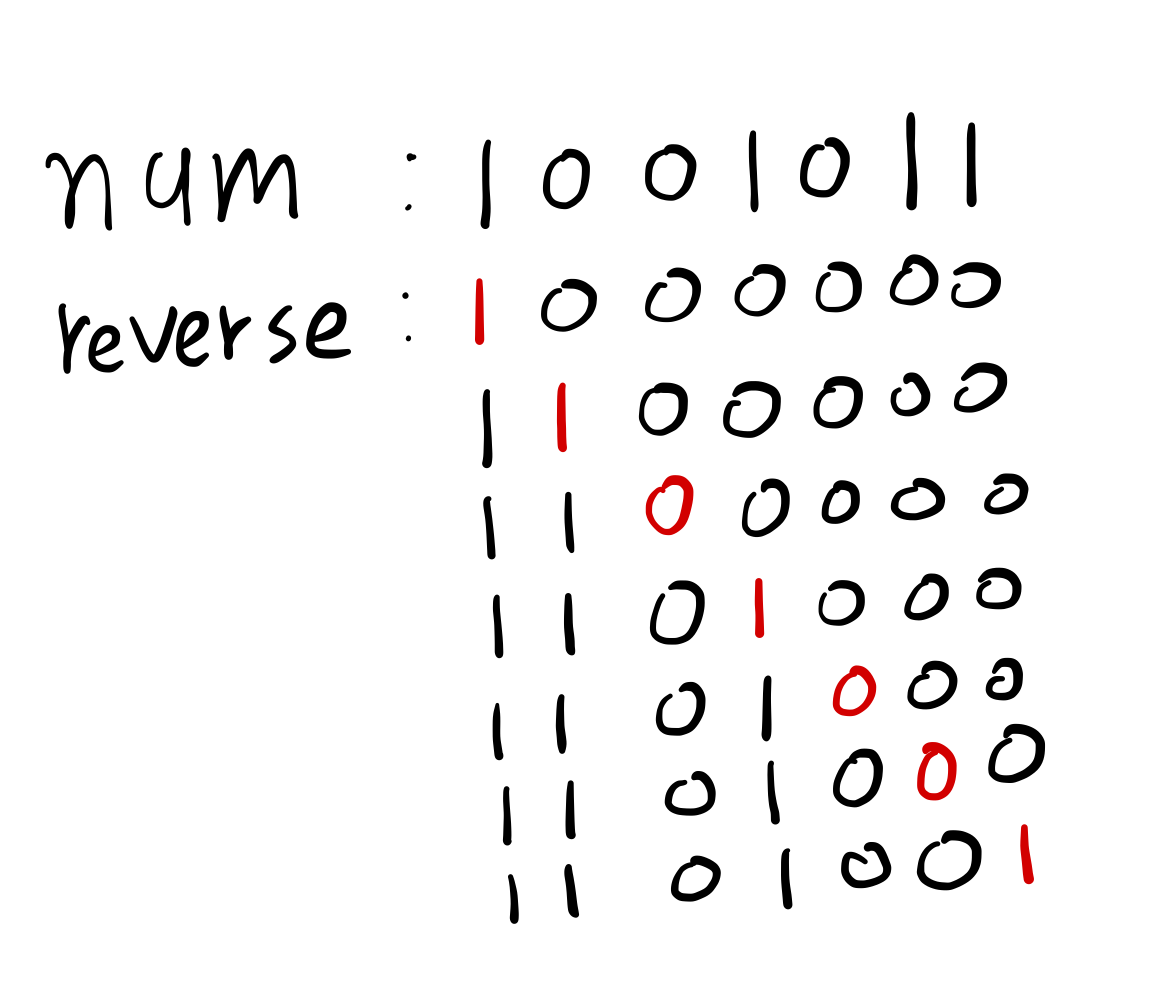 처음엔 다음과 같이 구현했습니다. 단순 시프트 계산을 통해, reverse를 구했죠