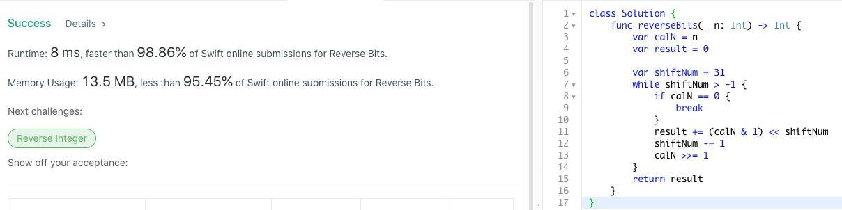 처음엔 다음과 같이 구현했습니다. 단순 시프트 계산을 통해, reverse를 구했죠