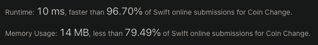 func coinChange(_ coins: [Int], _ amount: Int) -> Int {