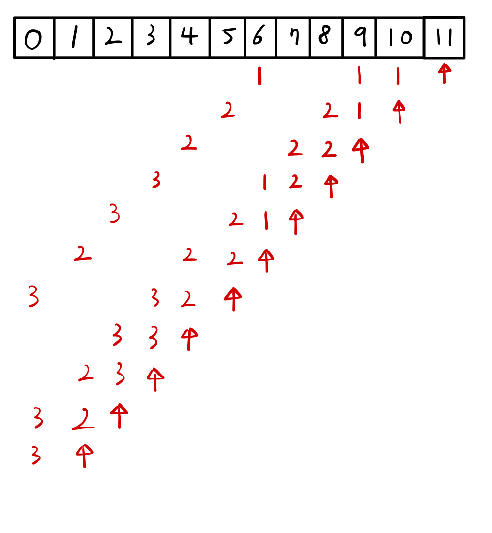목표값인 11부터 코인들(1, 2, 5)을 빼가며, 최소값들을 저장해 나가면 됩니다.