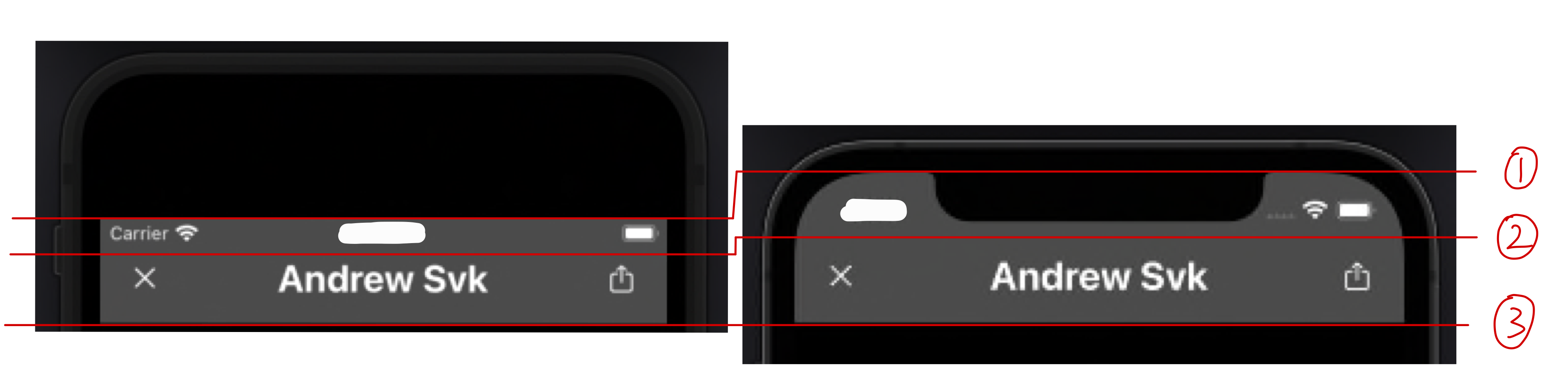 왼쪽은 TouchID를 제공하는 아이폰, 오른쪽은 FeceID를 제공하는 아이폰이에요.