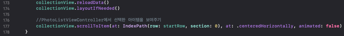 177라인 : 사진 목록 화면에서 선택한 사진으로 이동하게끔 구현했어요