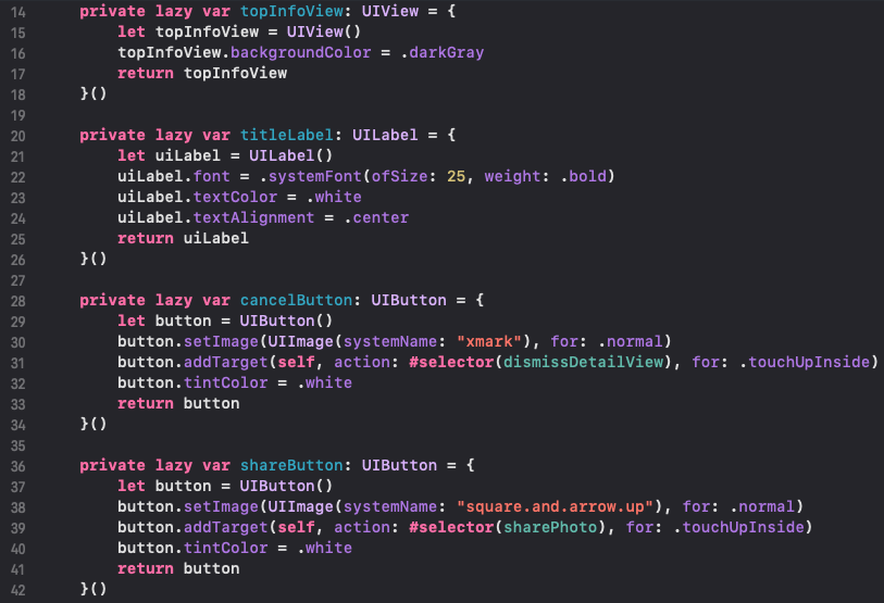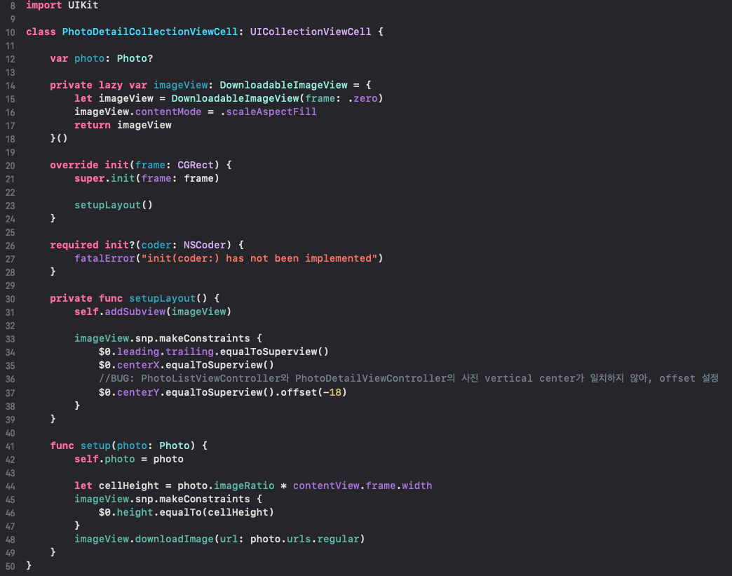 실제로 사진을 보여주는 cell인 PhotoDetailCollectionViewCell을 볼까요?