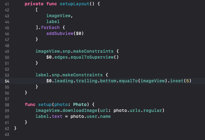 50라인 : SnapKit을 활용하여 레이아웃 구성을 합니다.