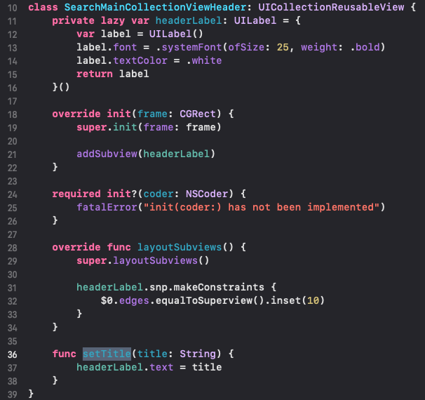 10라인 : Header이다 보니까 UICollectionReusableView를 사용합니다.