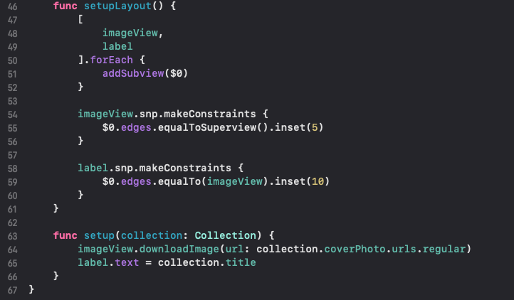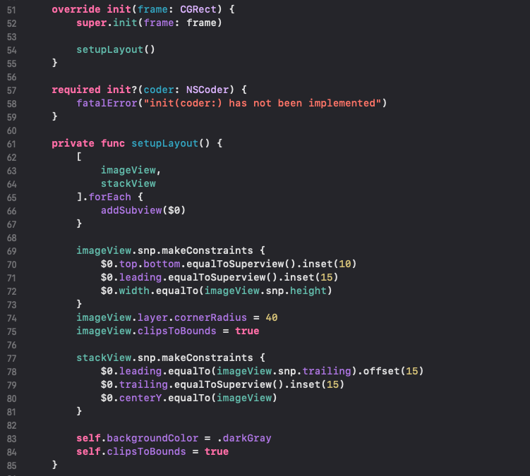 또한, SnapKit을 활용하여 레이아웃 구성 및 데이터를 설정합니다.