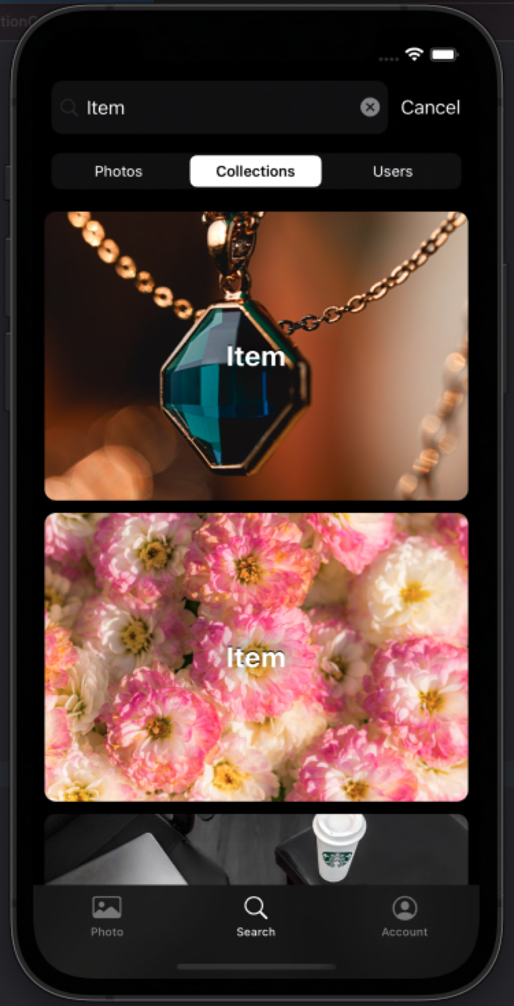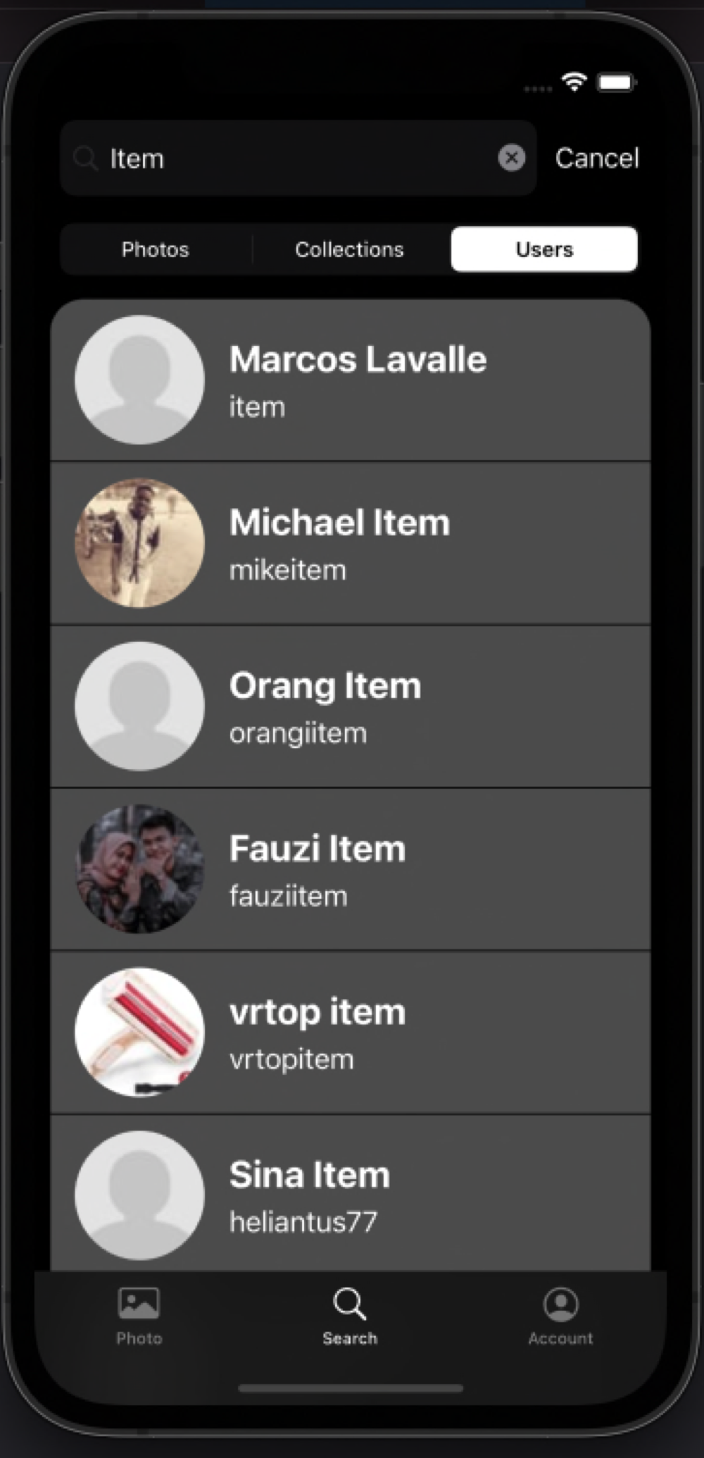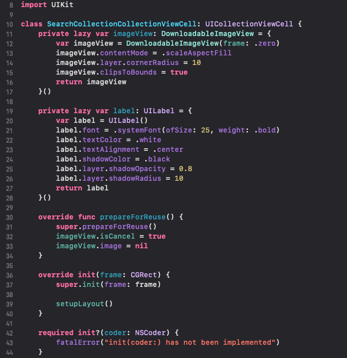 검색화면에서 Photo Cell은 PhotoListViewController에서 사용한 PhotoListCollectionViewCell을 그대로 사용했어요.