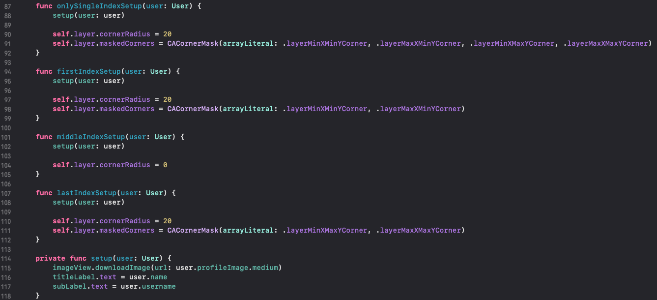 87라인 : cell이 1건인 경우 모든 모서리를 round 처리 합니다.
