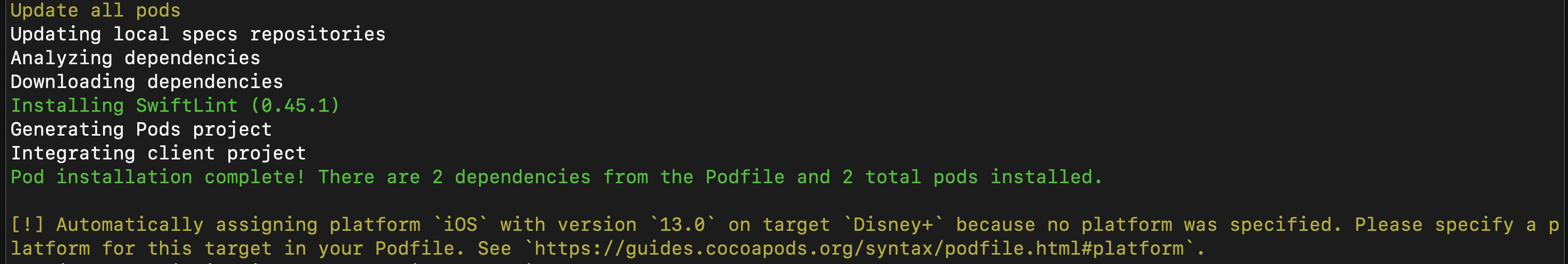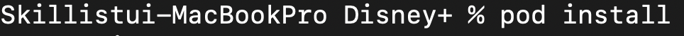 4. 프로젝트에서 코코아팟 사용이 처음이라면 "pod install"을, 사용중인 코코아팟에 SwiftLint를 추가했다면, "pod update"를 터미널에 입력합니다.