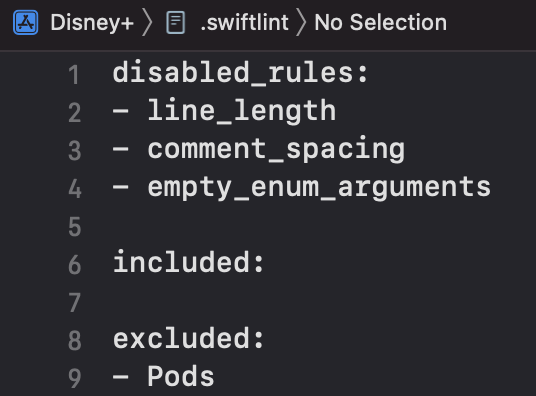 11. ".swiftlint.yml" 파일을 열고 다음 text의 8~9라인을 입력합니다.