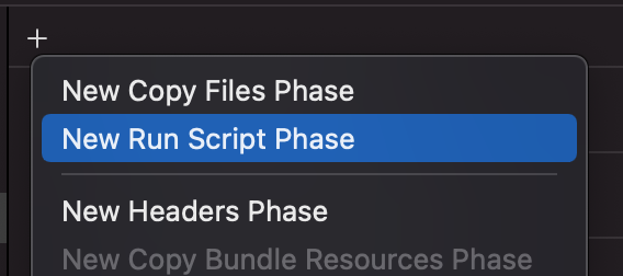 "New Run Script Phase"를 선택하여, 새로운 Run Script를 추가하세요.