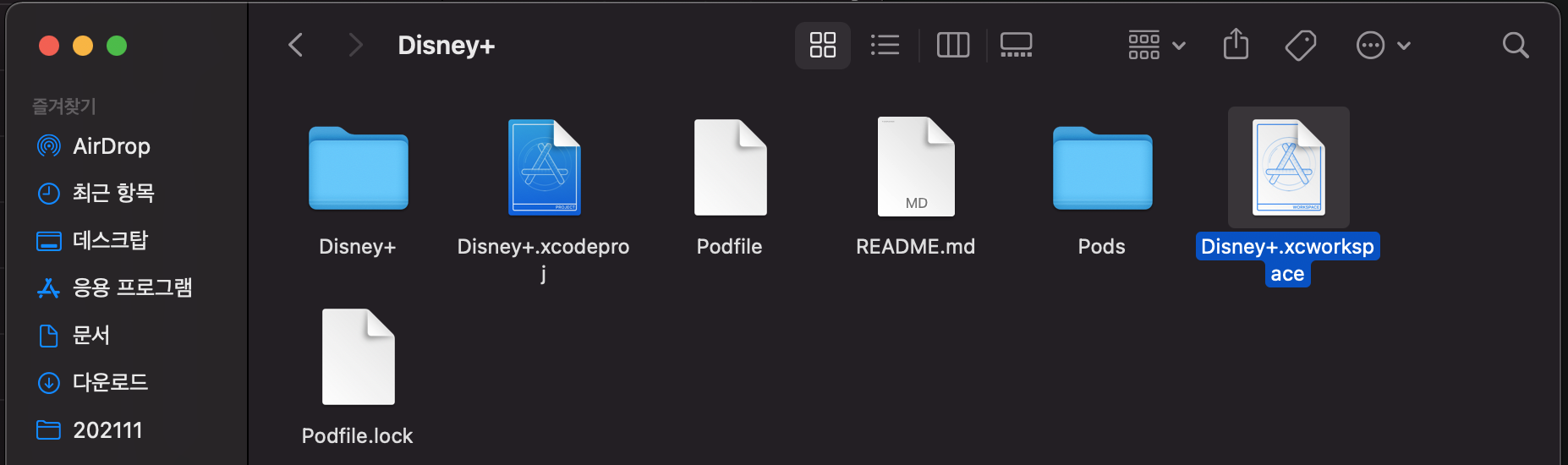 5. cocoapods을 적용했다면, 우리는 이제 "xcworkspace" 확장자를 가진 파일을 실행해야 합니다.