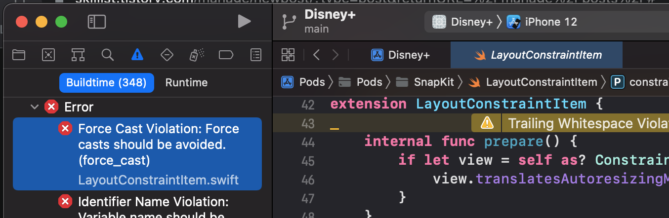9. 저는 많은 에러가 발생했는데요, SnapKit 오픈소스에서 발생한 에러들입니다. 그래서 이를 무력화 해볼거에요.