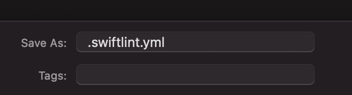 10. 새로운 empty 파일을 생성하고, 이름을 ".swiftlint.yml"로 작성해요. 꼭 ".swiftlint.yml"입니다.