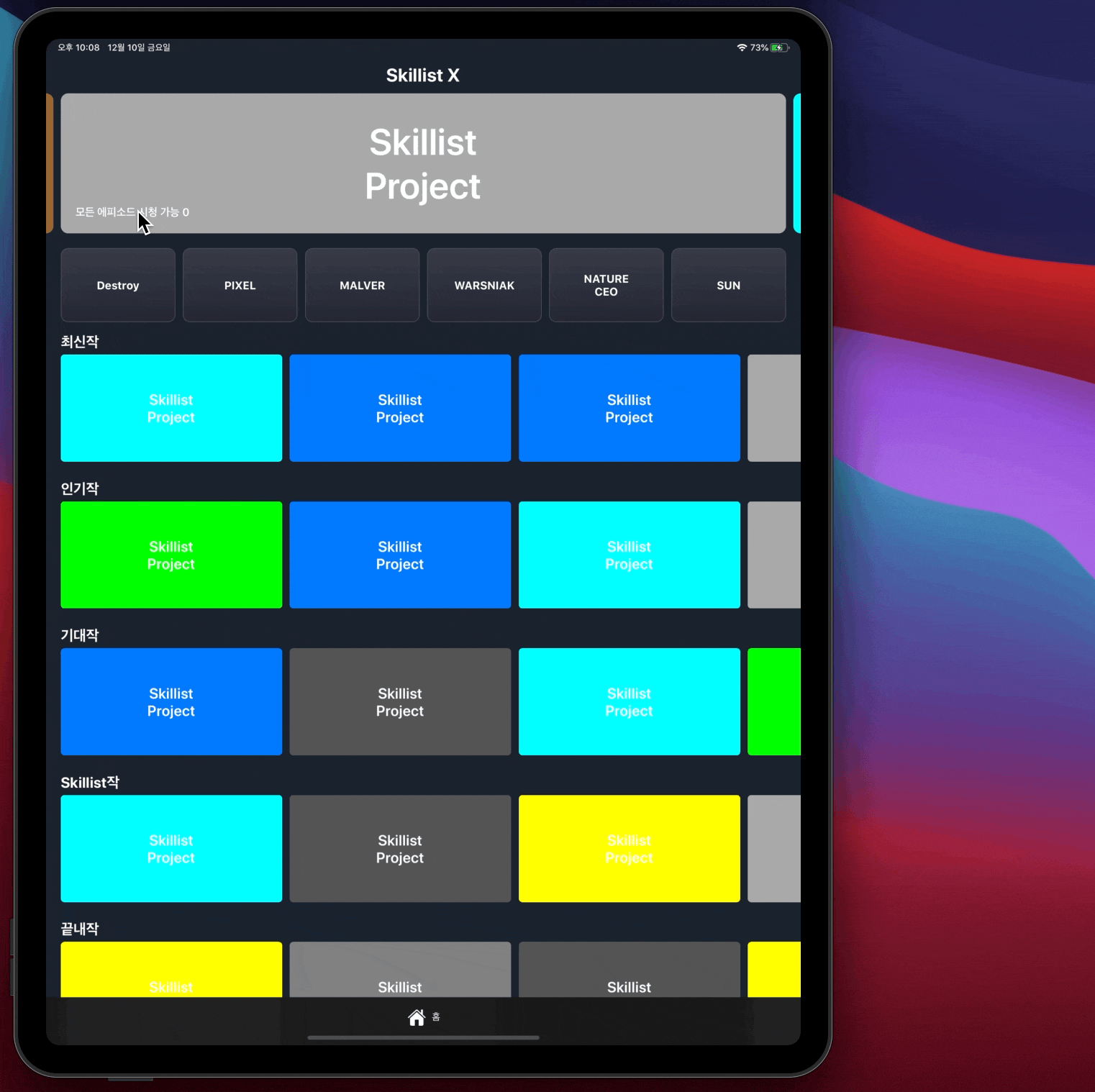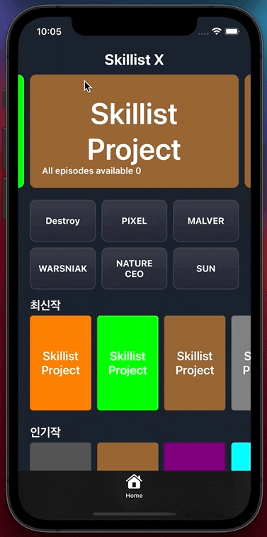디테일부분을 구현하다 보니, 생각보다 며칠정도 더 걸렸지만, Home 화면에 대해선 구현했습니다.