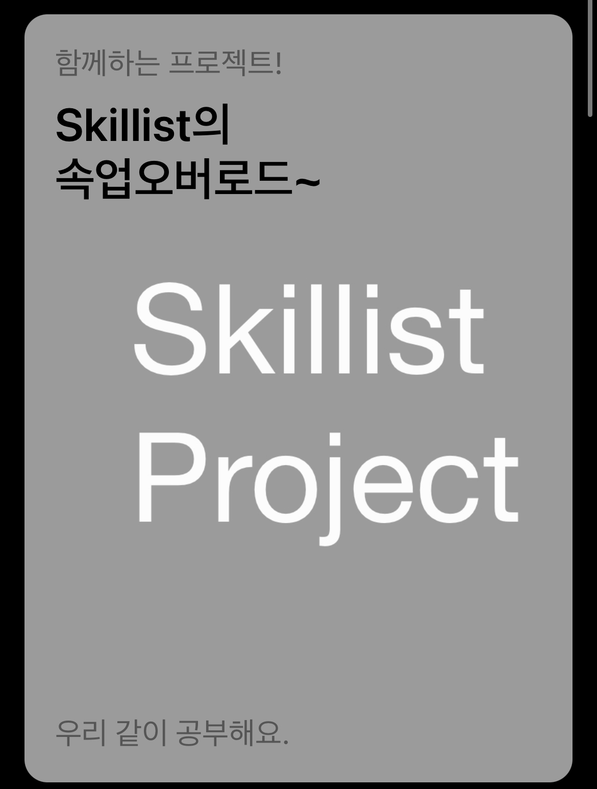 사실상, 다음 스크린샷의 "Skillist Project"와 "회색 백그라운드"는 더미 이미지인거죠.