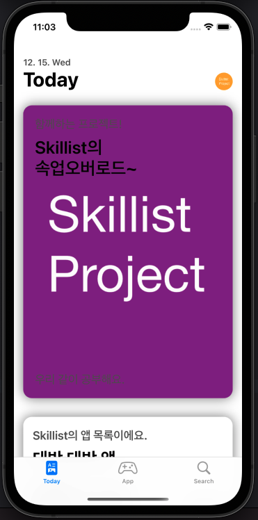 | AppleAppStore - 5. Today 화면 구현 (0) | 2021.12.16 |
