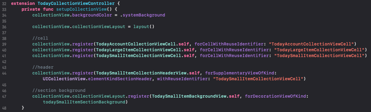 collectionView.collectionViewLayout.register(TodaySmallItemBackgroundView.self, forDecorationViewOfKind: todaySmallItemSectionBackground)