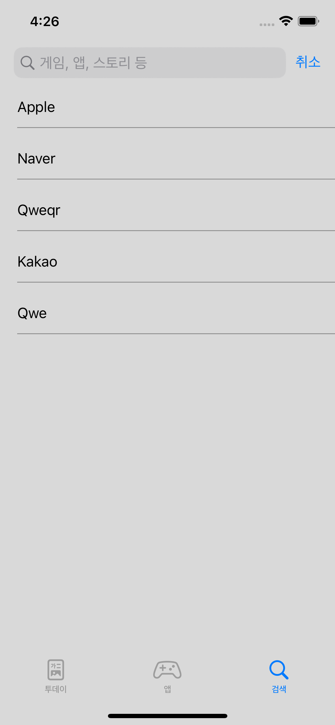오늘은 간단하게, 검색 히스토리를 보여주는 검색화면을 구현해볼거에요.