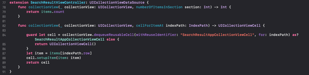 77라인 : collectionViewDataSource입니다. extension으로 구현했어요.