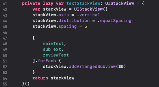 41라인 : 라벨들을 스택뷰로 구현합니다.