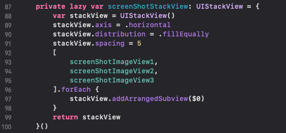 87라인 : 스크린샷 View를 스택뷰로 묶어버렸습니다.