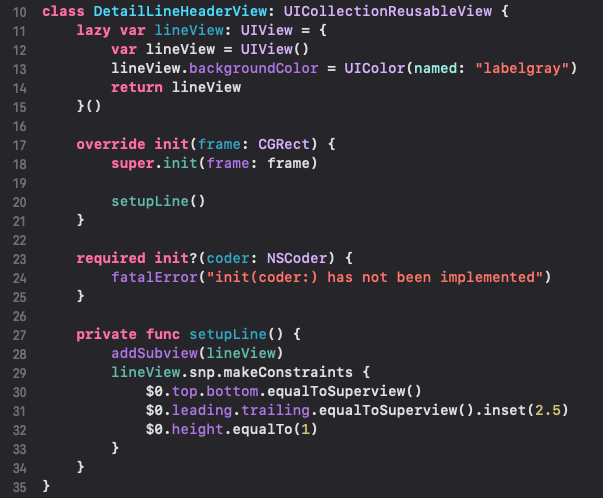 27라인 : lineView를 추가하고 제약사항을 구성합니다.
