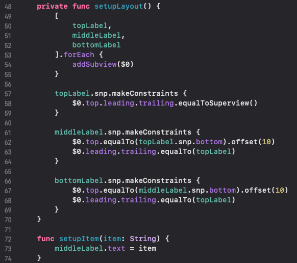 $0.top.equalTo(middleLabel.snp.bottom).offset(10)
