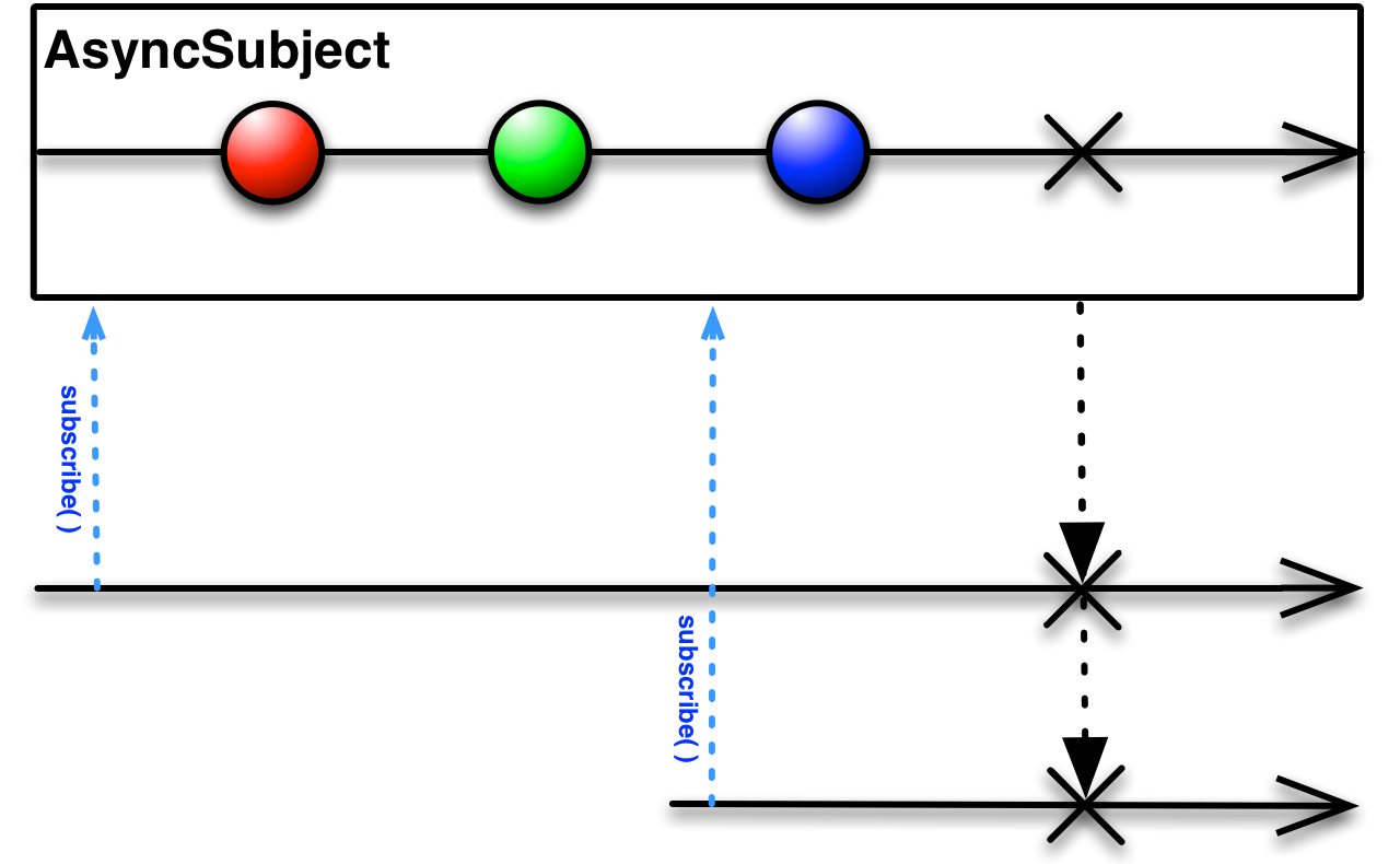 소스 옵저버블이 방출한 값이 없다면, AsyncSubject 또한 값을 방출하지 않습니다.