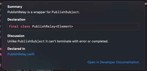 13라인 : viewWillAppear 시 이벤트를 전달받습니다. publishRelay는 옵저버블이며 옵저버죠. 또, error나 completed로 종료되지 않고 next 이벤트만 방출합니다.