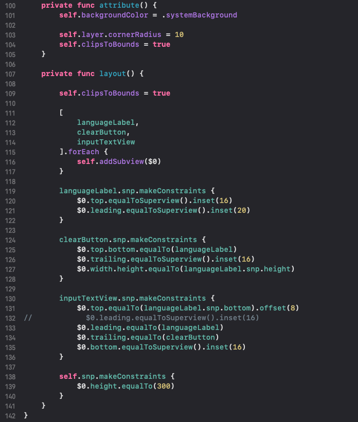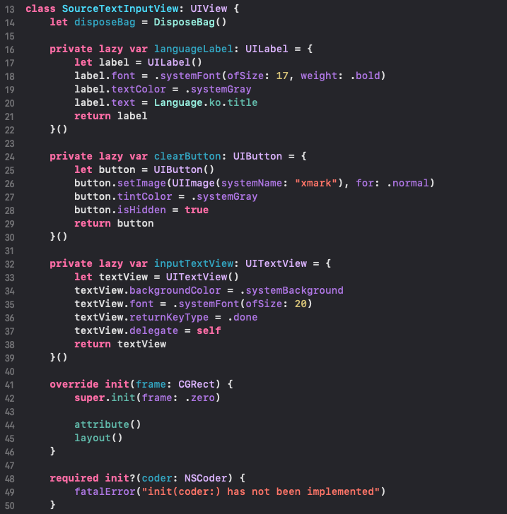 View를 보시죠. RxSwift 관련 코드인 바인드는 마지막에 보겠습니다.