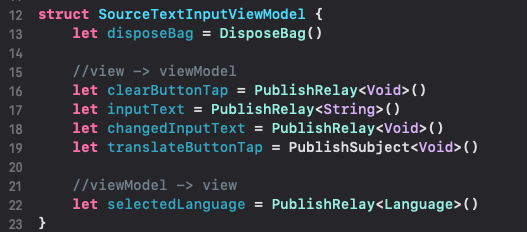 18라인 : 번역할 text가 변경되면, 가장 최근에 번역된 View를 hidden할 예정입니다. 이에 사용할 Relay입니다.