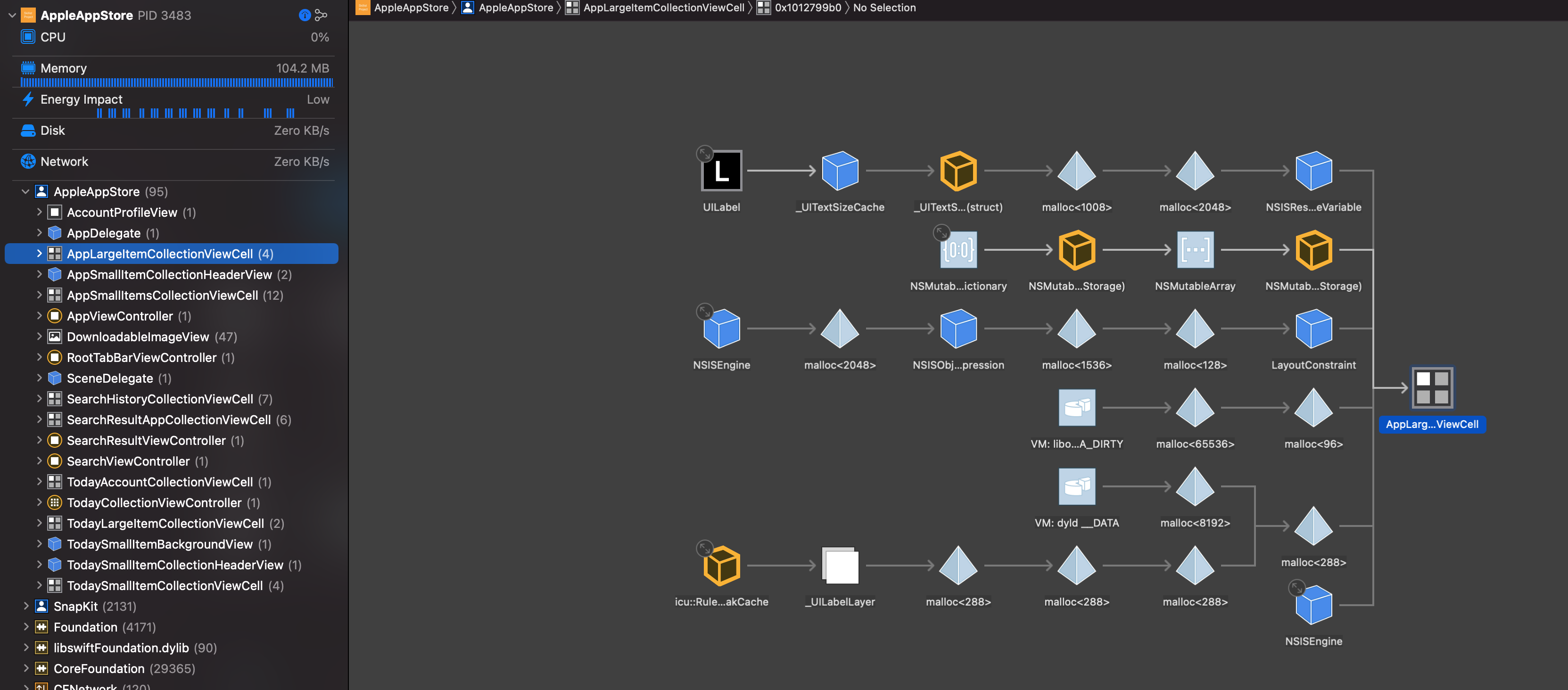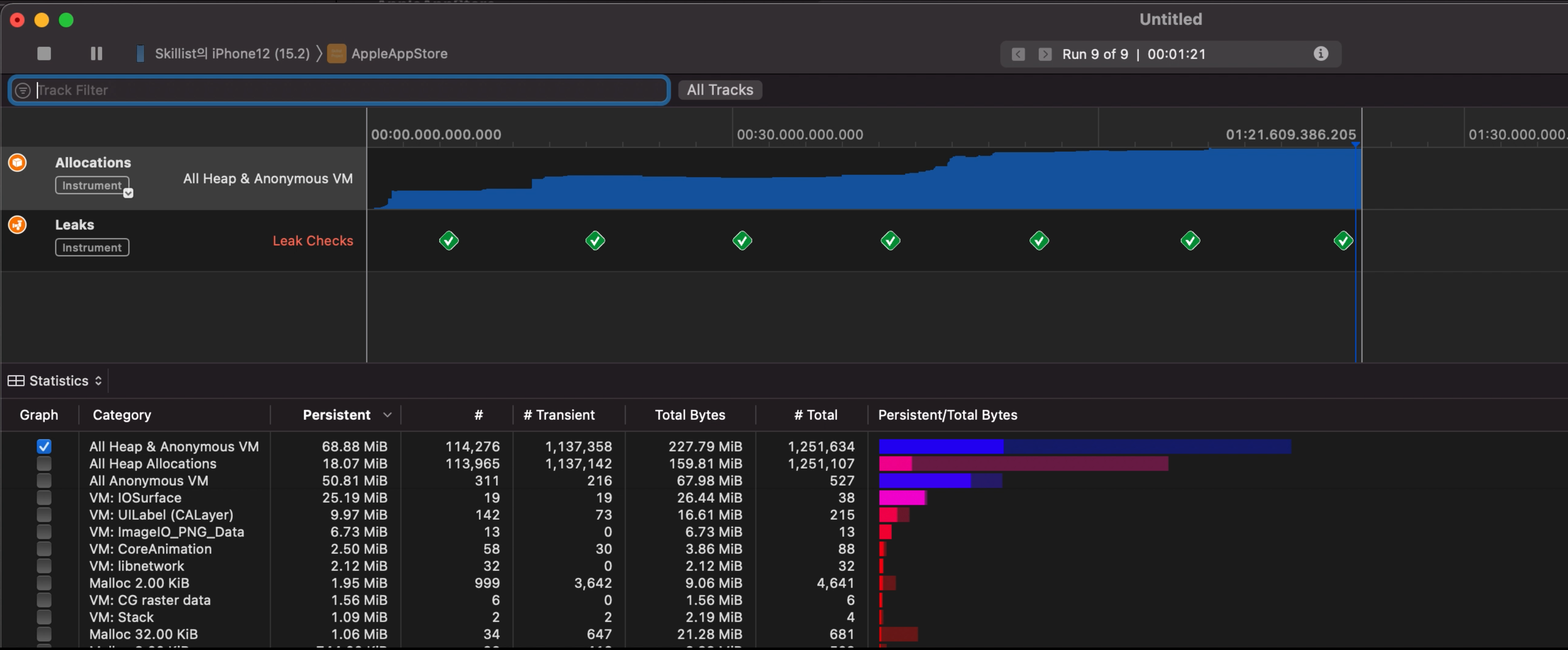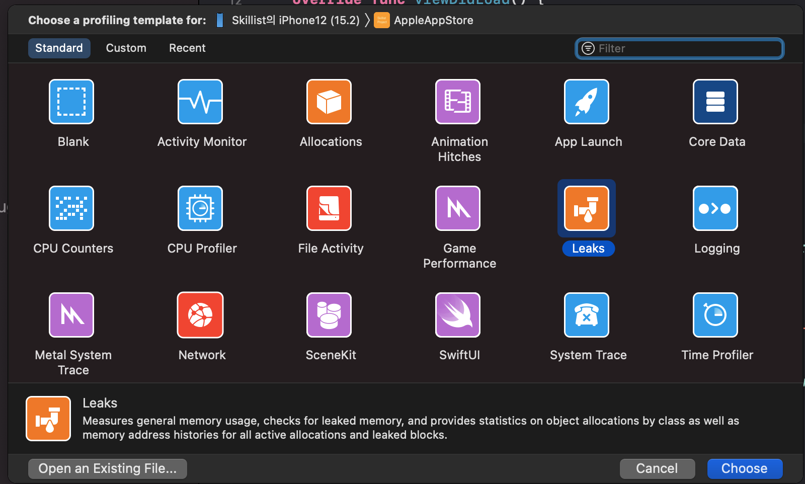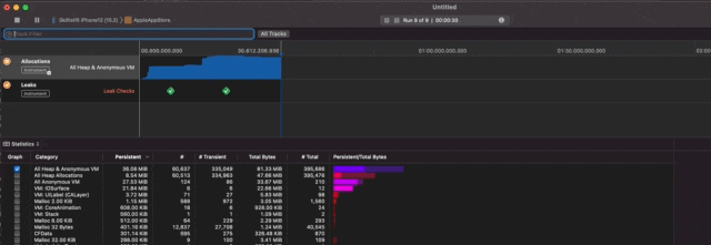 Instruments의 Leaks 도구를 활용해봤어요.