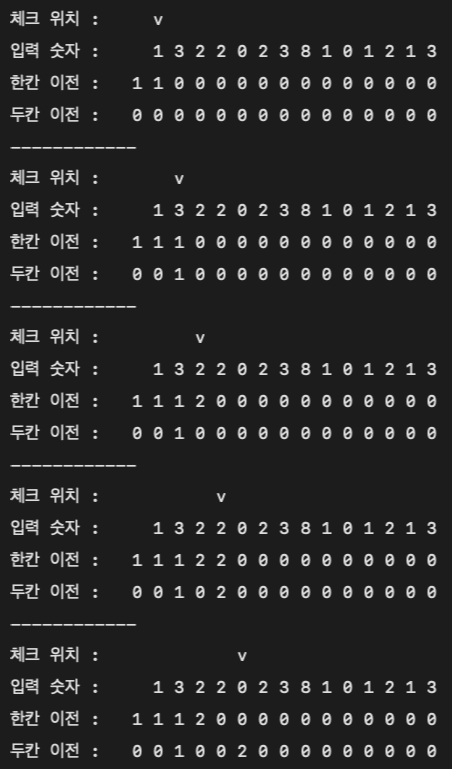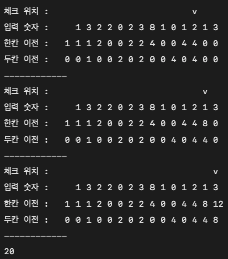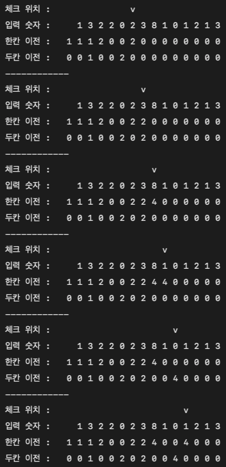 그래서, 바로 전 숫자(1칸 이전)에서 가져온 암호의 경우의 수를 입력하는 array를 만들어줬어요.