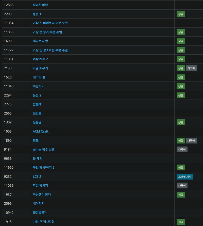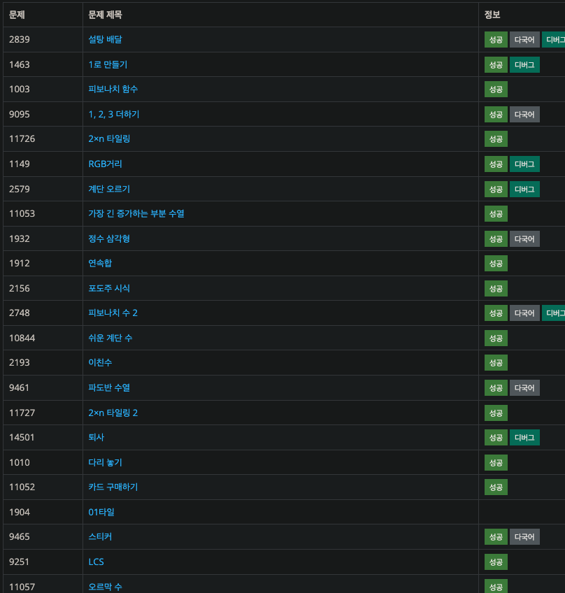 저도 몰랐는데, 방금 확인해보니 꽤 많은 DP 문제를 풀었네요.