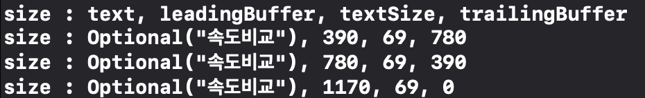 값은 순서대로 text, leadingBuffer, textSize, trailingBuffer 입니다.