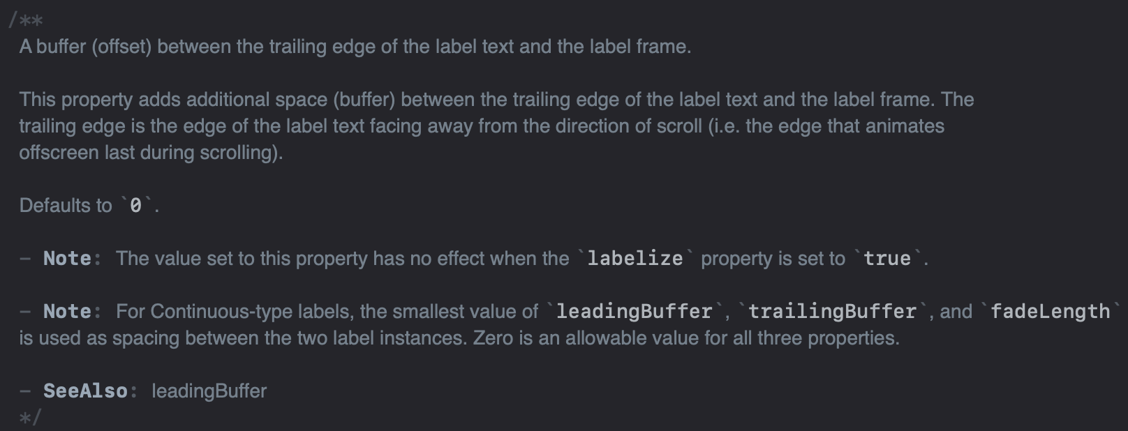 "- Note: For Continuous-type labels, the smallest value of `leadingBuffer`, `trailingBuffer`, and `fadeLength`